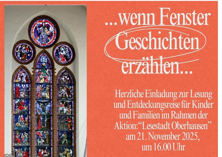 Im Rahmen der Lesestadt Oberhausen laden wir am 21.11.2025 herzlich ein zu der Veranstaltung „…wenn Fenster Geschichten erzählen…“ mehr