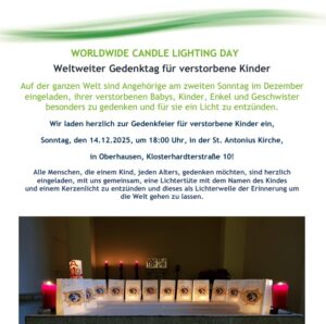 Zum weltweiten Gedenktag für verstorbene Kinder gibt es am Sonntag, den 14.12.2025, um 18:00 Uhr, in der St. Antonius Kirche in Oberhausen, Klosterhardterstraße 10 eine Gedenkveranstaltung….mehr.