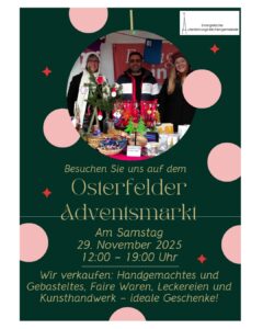 Am 29.11.2025 sind wir mit einem Verkaufsstand auf dem Osterfelder Adventsmarkt, schaut gerne vorbei…mehr